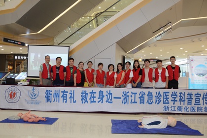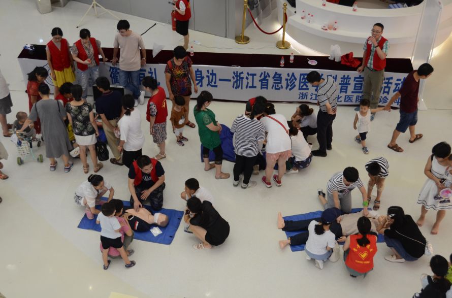 8月28日,浙江省医学会急诊医学分会、浙江衢化医院急诊科在衢州万达广场内举办了“衢州有礼 救在身边”——浙江省急诊医学科普宣传活动。心肺复苏、创伤包扎止血固定、海姆立克急救法……活动现场,从可爱的小朋友,到白发苍苍的老人,众多市民驻足观看学习。