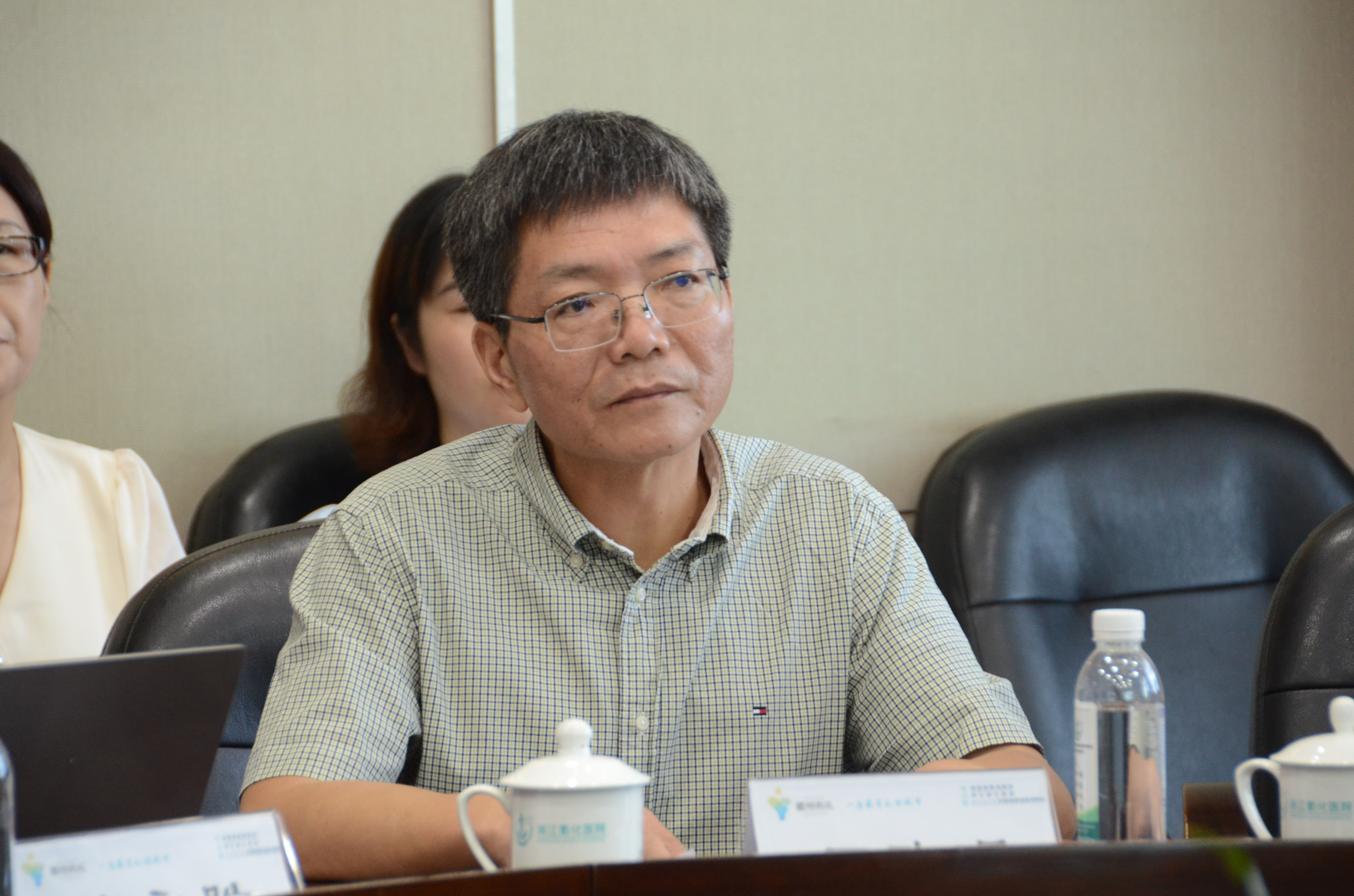 座谈会上,浙医健衢州医院党委副书记、院长陈永胜围绕学科建设、人才培养、康养业务等方面,详细介绍医院基本情况。